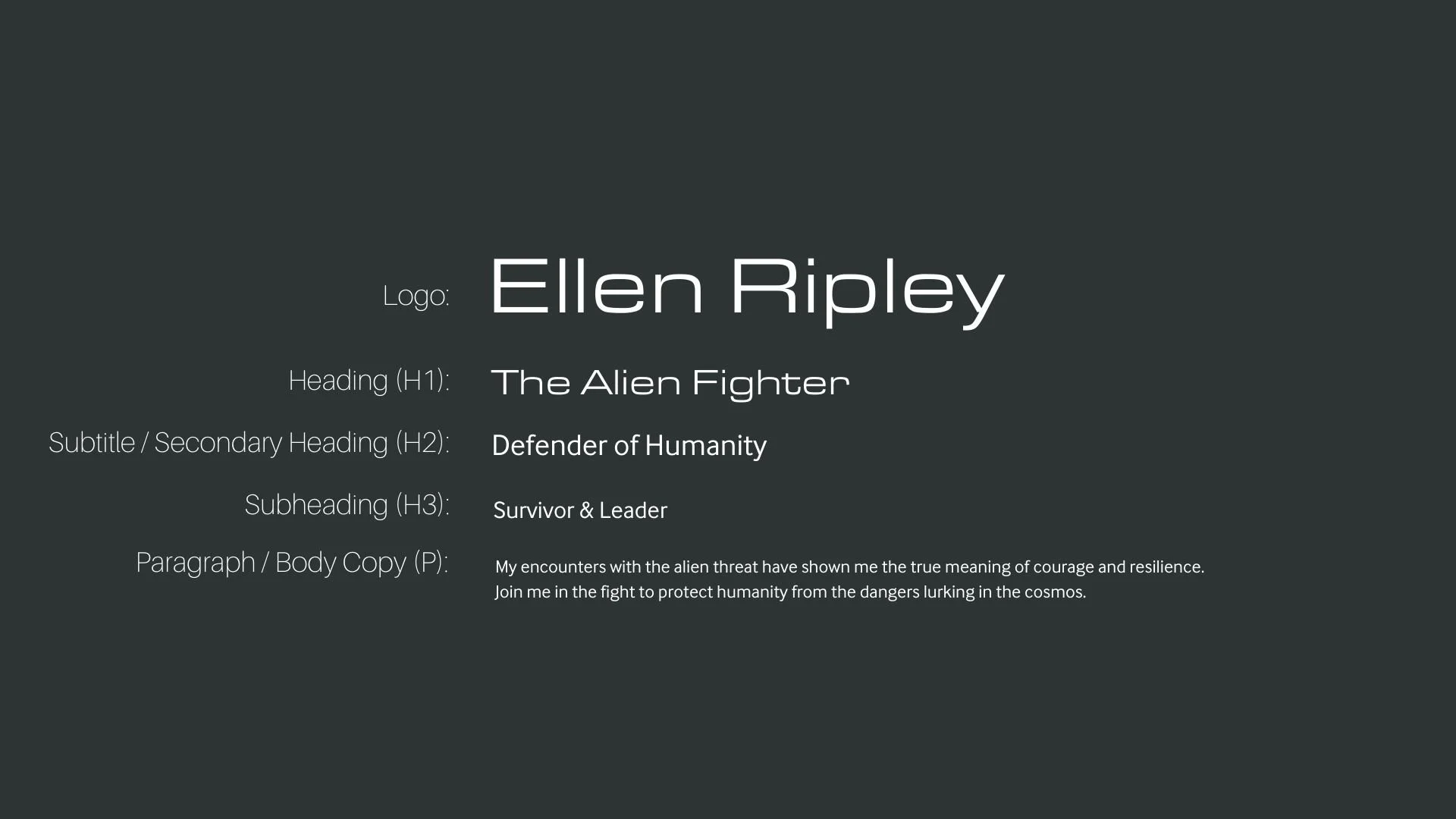 The font pairing of Eurostile Extended and Interface aligns perfectly with the character of Ellen Ripley, as portrayed by Sigourney Weaver in the movie "Alien(1979)" .