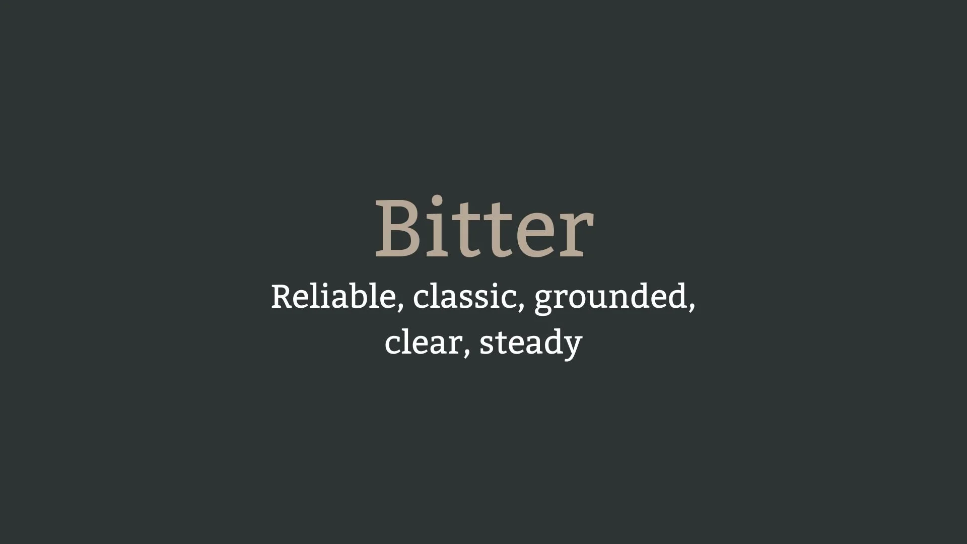 Bitter is a contemporary serif typeface designed for clarity and readability, particularly in digital environments. With its strong, clean lines and classic yet modern appeal, it is well-suited for long-form text as well as headlines, offering a balanced design that performs well both on screen and in print.